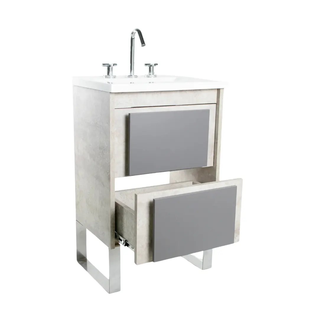 Se presenta con una bacha de borde ancho, patas de acero inoxidable y melamina con relieve touch. Se ha diseñado en tres colores: blanco, teca y wengue con la terminación de los cantos en PVC que protegen la madera de la humedad y le aseguran una vida útil y perdurable. La línea Urban tiene un espacio de guardado amplio gracias a sus dos cajones adaptados con guías telescópicas que permiten el deslizamiento seguro y rendidor.
